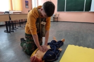 Ребята отвечали на теоретические вопросы, демонстрировали умение ориентироваться в чрезвычайных ситуациях, надевали страховочное снаряжение и боевую одежду для прохождения зоны химического поражения, тренировались в меткости и оказании первой медицинской помощи.
